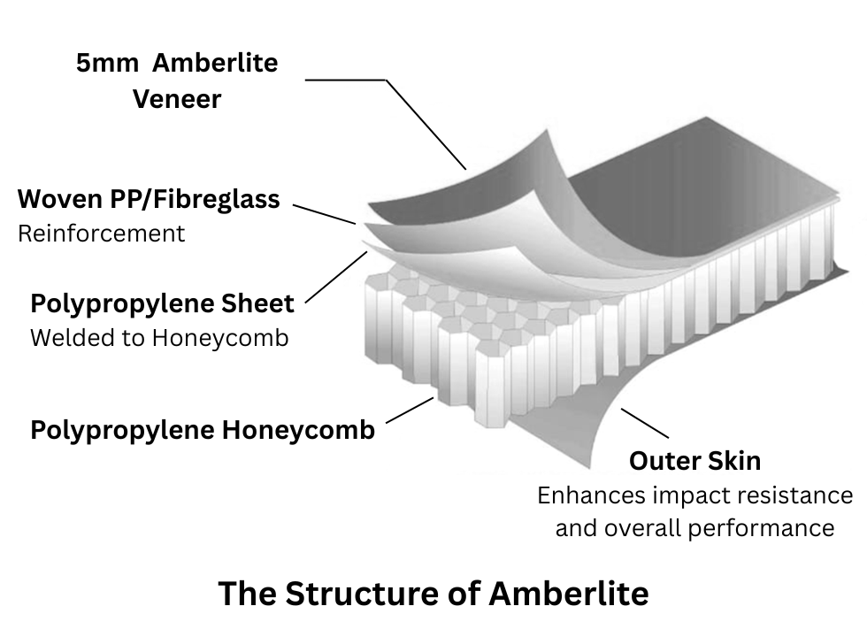 Amberlite is now available with a lightweight, translucent honeycomb panel bonded to the reverse side. This advanced construction enhances impact resistance and improves material flatness while maintaining a reduced overall weight.